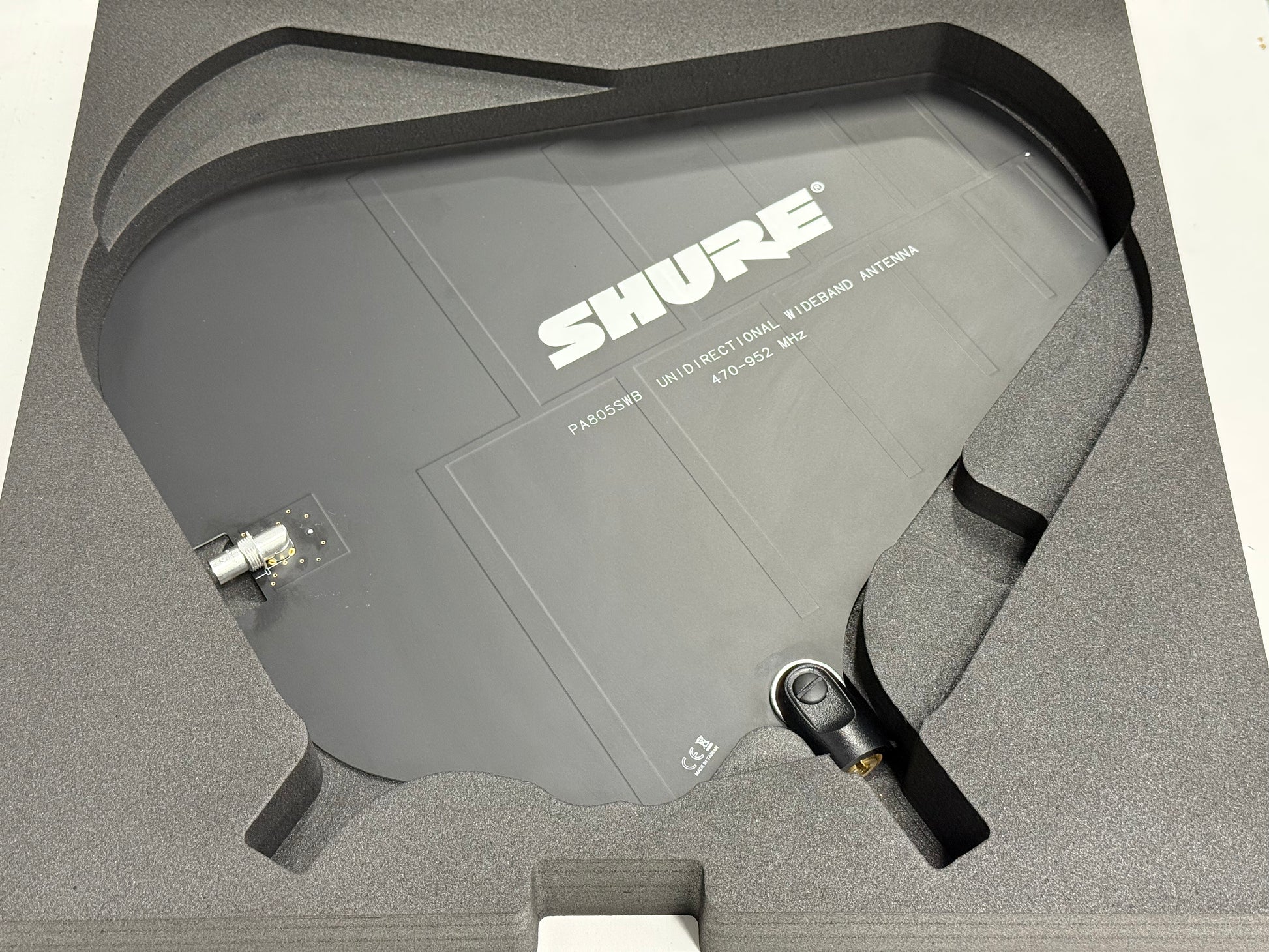 Custom foam insert for storing two (2) Shure paddle antennas (available options include UA874US/UA874WB and PA805SWB) in a standard 2u rack drawer. This pattern is not compatible with UA874V (VHF) or UA874XA (900+MHz).